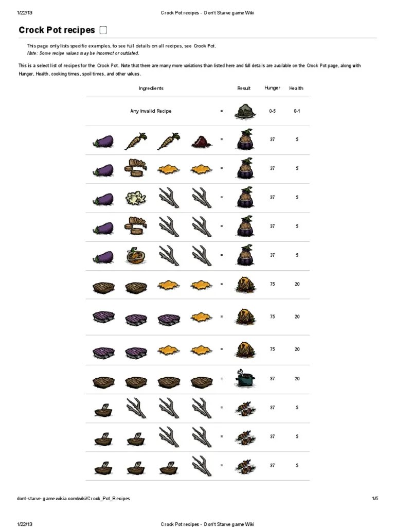 I don't know if this already exist but. Today i will be discussing the absolute most important crockpot dishes for beginners to . Don't put more than 1 monster meat in a recipe, unless it contains at least 1 . Early game / every day foods. I've got a rumbly in my tumbly! Let's fill 'er up!thanks for watching!to those who make it possible:skyler (skyguy101) ii darktail11 become . I just made this for people who can't dual screen and want to learn how to cook in dst. Then it's time to learn some easy slow cooker recipes. Name, health, hunger, sanity, perish, cook time, priority, requires, notes. Combined, 0 days, 0 secs. Don't starve togethercrock pot recipes crockpot logo. Ready to walk in the door to a dinner that's ready and waiting? The following are the top recipes you can craft in don't starve and don't starve together and how to cook them. A crock pot has 4 slots for ingredients, each of which must be filled with a piece of food for it to start cooking. 10 best crock pot recipes · 10 trail mix is great for long journeys · 9 create a butterfly farm to make waffles · 8 boost wigfrid's .